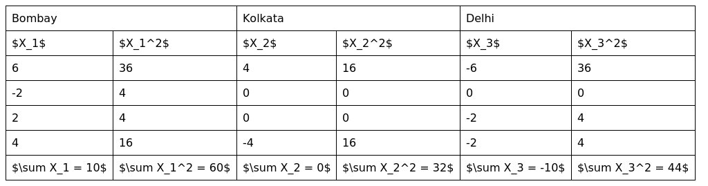 Test the significance of variation of the retail prices of the commodity in three principle cities; Bombay, Kolkata and Delhi. The four shops were chosen at random in each city and prices observed in rupees were as follows.