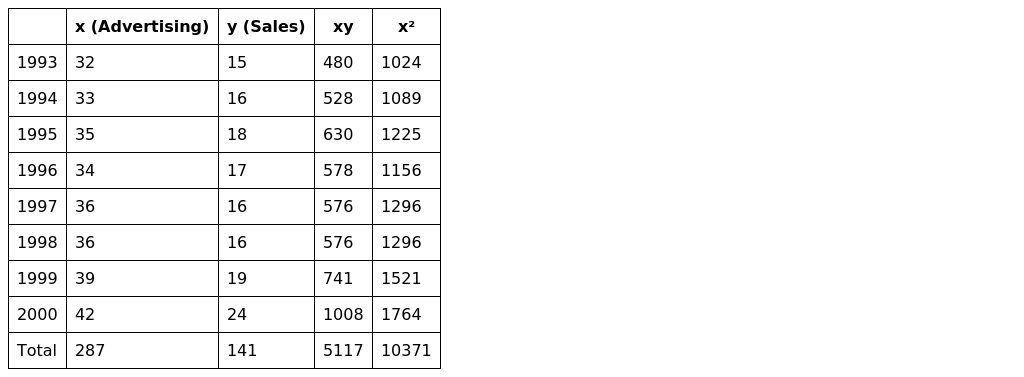 Company A is a microcomputer producer. The following data represents Company A's yearly sales volume and its advertising expenditures over a period of 8 years. Sales in millions of dollars and advertising is in $10,000.