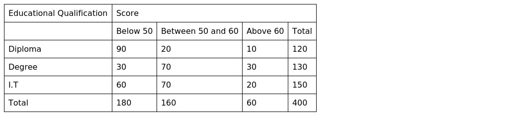 1.1.2 The probability that he is a Degree graduate, given that his scores are above 60 is .