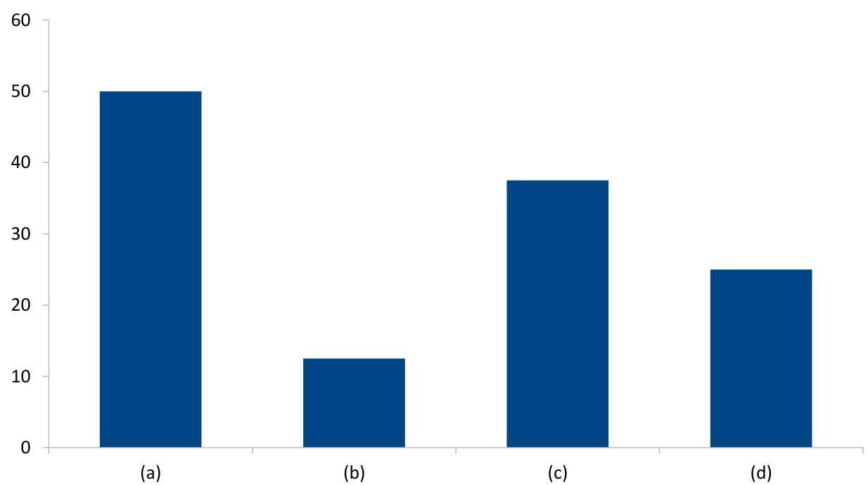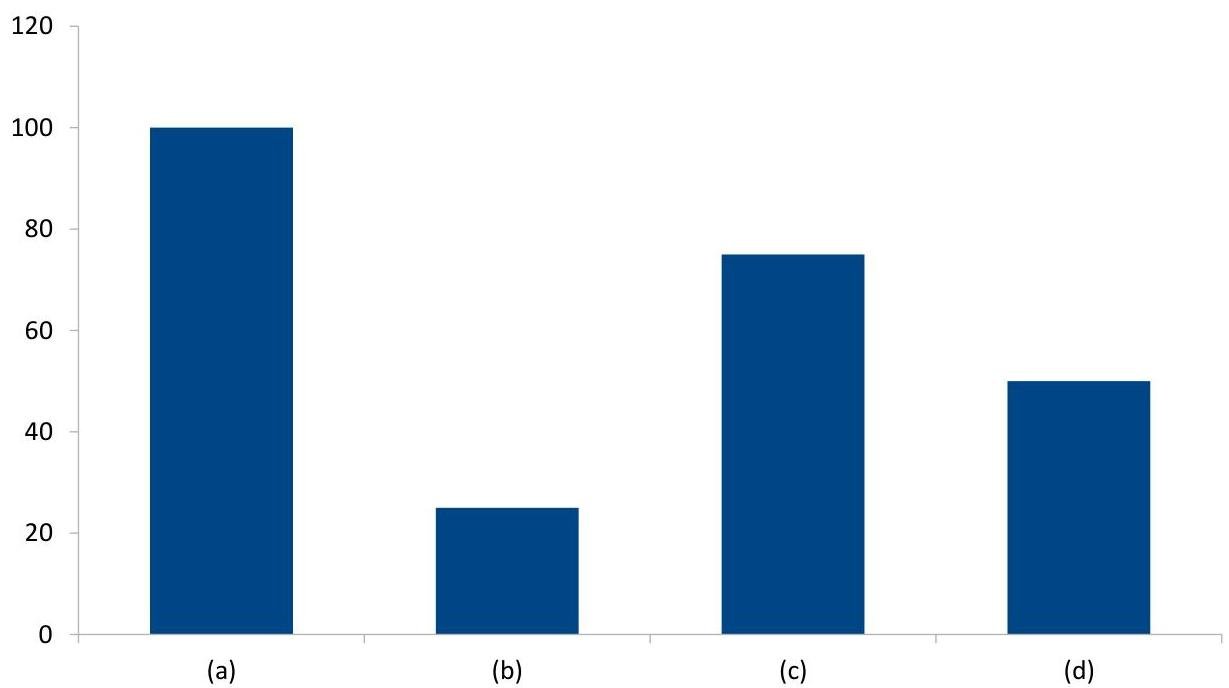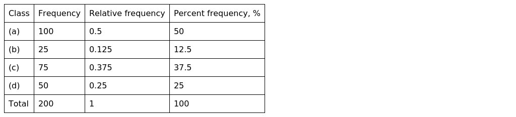 2.4 A multiple choice question on an exam has four possible responses—(a), (b), (c), and (d). When 250 students take the exam, 100 give response (a), 25 give response (b), 75 give response (c), and 50 give response (d).