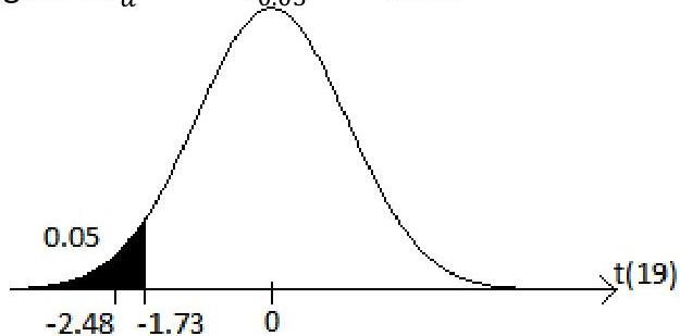 There are degrees of freedom . Hence a critical value for a 0.05 one tailed critical (rejection) region is .