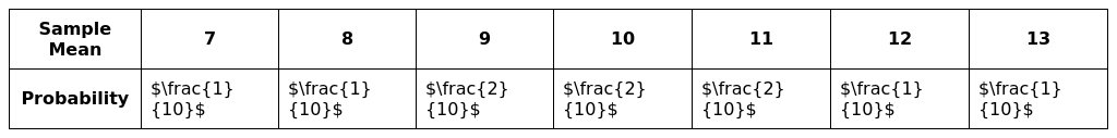 Suppose we have a population of size consisting of the above: 6,8,10,12,and 14. Take sample of size 2 without replacement and construct sampling distribution of the sample mean.