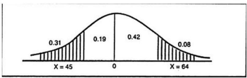 In a normal distribution 31% of the items are under 45 and 8% are over 64. Find the mean and standard deviation of the distribution