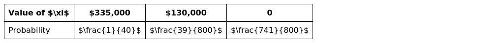 E(ξ)=$335,000⋅401+$130,000⋅80039+0⋅800741=$14,712.5
