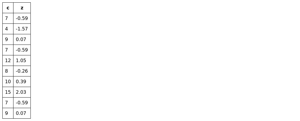 z <- format((c - mean(c))/sd(c), digits=1)