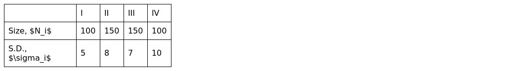 A population of size 500 is divided into 4 strata. The following table gives the (5) data on size and standard deviation of each stratum.