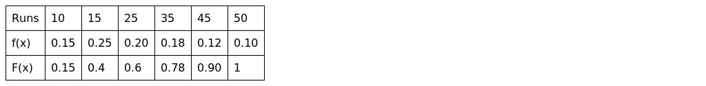 Sachin Tendulkar scores runs in T-20 league match with following discrete probability density function.