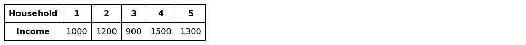 Let be the number of household, is the corresponding income.