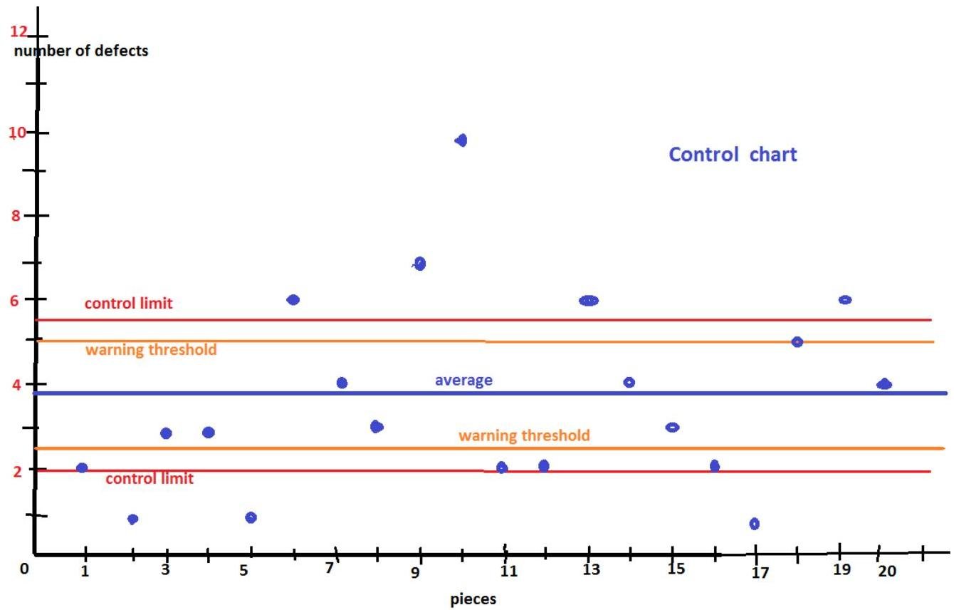 So the pieces with number of defects: 1, 6, 7, 10, will be sent for quality assurance and process verification, the cause analysis.