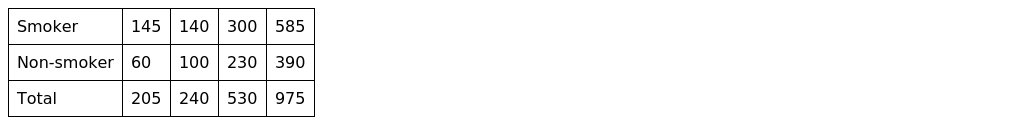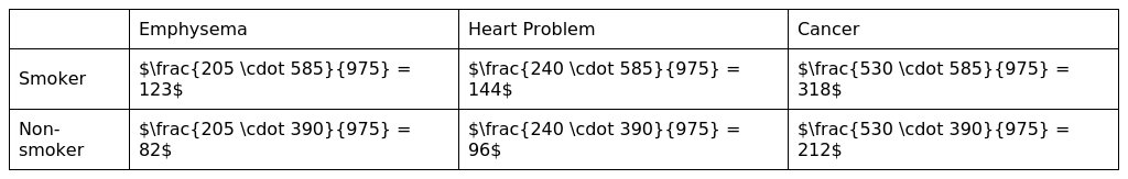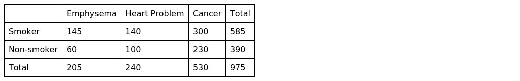 The table below shows the results of a study on smoking and three illnesses. We are interested in determining if the proportions of smokers in the three categories are different from each other.