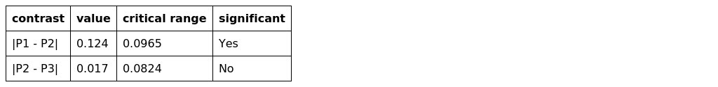 f. Using α = 0.1, the conclusion of the pairwise comparison is?