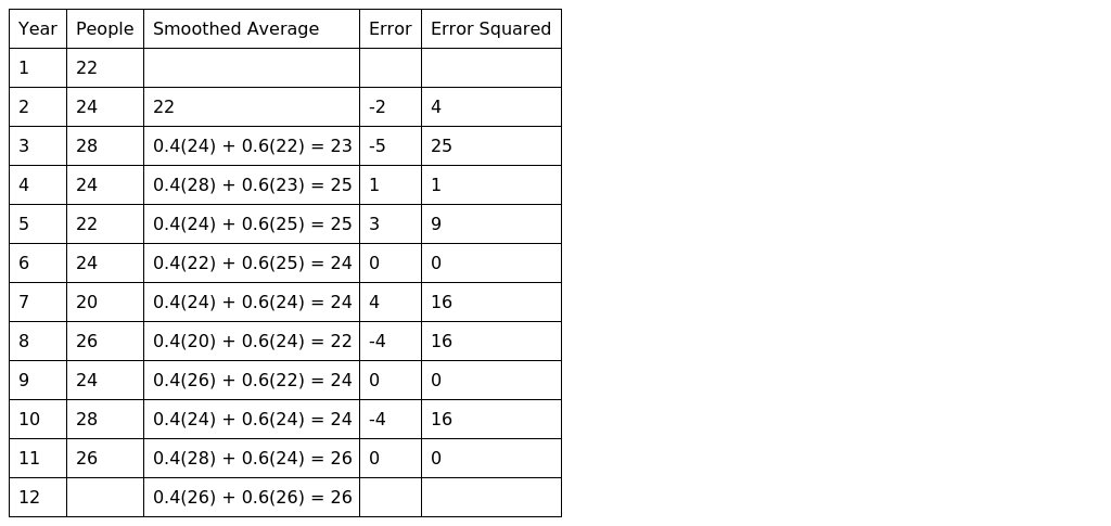 g. When comparing the accuracy of both forecasting techniques (3-year moving average and exponential smoothing with a 0.4 smoothing constant) we can conclude that
