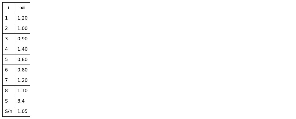Let's put the numbers into a table calculate the sum of all numbers (S) and divide it by the quantity of numbers (n=8):