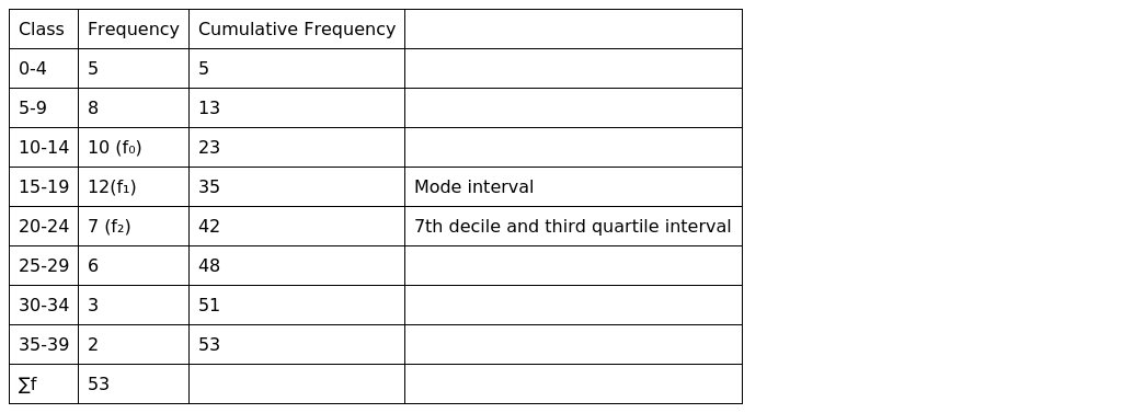 Mode=15+2⋅12−10−712−10⋅4=15+24−172⋅4=15+78=16⋅71=16.14.