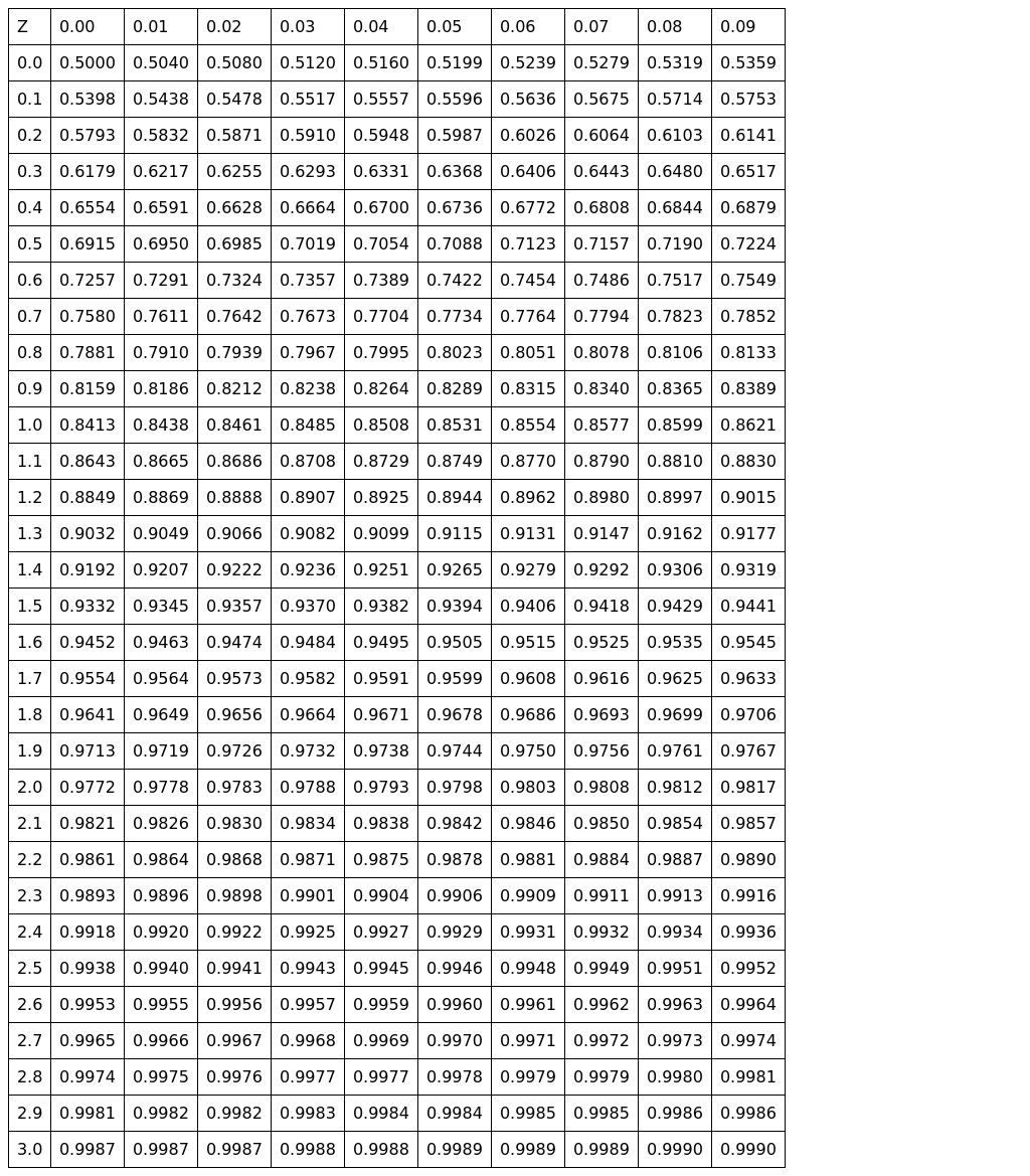 Probability Content from -oo to Z