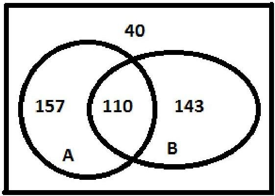 where ∣A∣=267, ∣B∣=253, ∣A orB∣=40, ∣U∣=450.