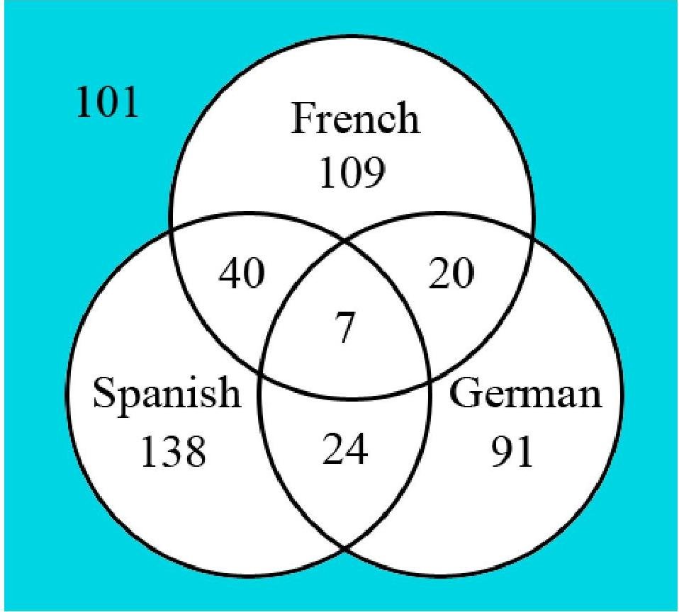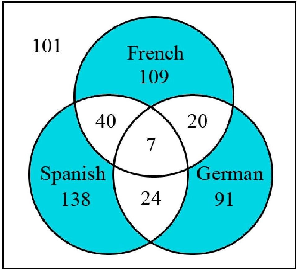 The Department of Foreign Languages of a liberal arts college conducted a survey of its recent graduates to determine the foreign language courses they had taken while undergraduates at the college. Of the 530 graduates