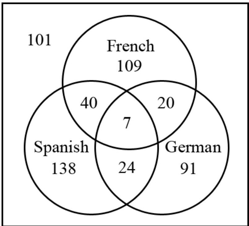 47 had at least one year of Spanish and French.