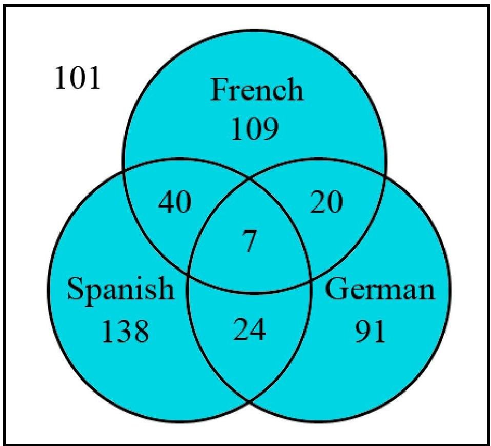 31 had at least one year of Spanish and German.