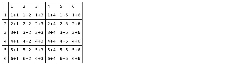 Sample space for two dice
