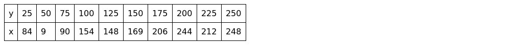 xˉ=1084+9+90+154+148+169+206+244+212+248=156.4;yˉ=1025+50+75+100+125+150+175+200+225+250=137.5;xy=1084⋅25+9⋅50+90⋅75+154⋅100+148⋅125+169⋅150+206⋅175+244⋅200+212⋅225+248⋅250=26310;σx2=10(84−156.4)2+(9−156.4)2+(90−156.4)2+(154−156.4)2+(148−156.4)2+(169−156.4)2+(206−156.4)2+(244−156.4)2+(212−156.4)2+(248−156.4)2=5322.84.