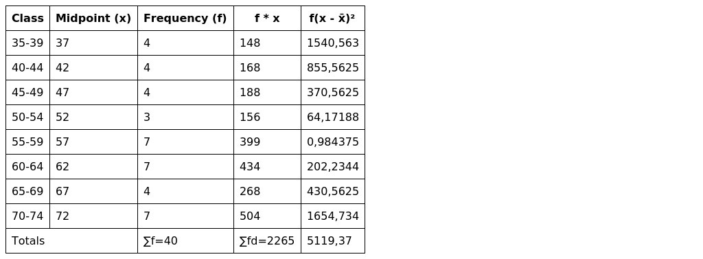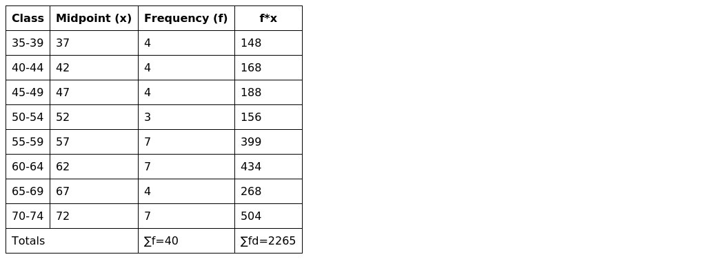 Using classes of 35-39, 40-44, - - - calculate;