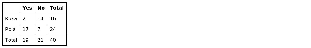 b How many shoppers who preferred Koka-Cola in the blind taste test had not previously purchased Rola-Cola? 21