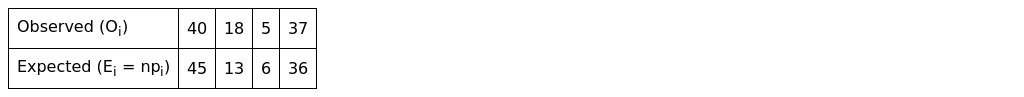 A geneticist tested 100 individual blood types and found that 40 had type A, 18 had type B, 5 had type AB and 37 had type 0. Use goodness of fit test at 5% level of significance to test whether the observed frequencies closely correspond to the theoretical ones.
