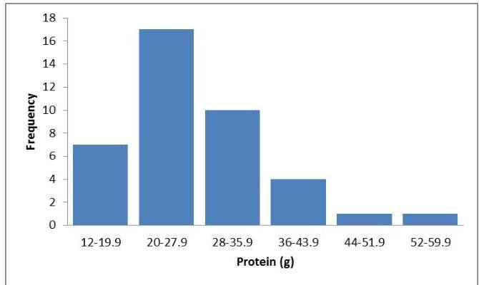 c) Comment on the distribution of the protein based on the histogram constructed in (b).