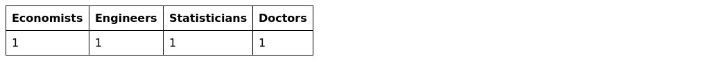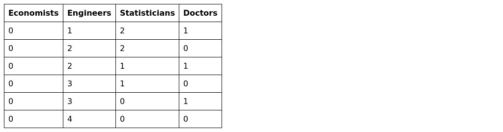 A committee of four is to be formed from among 5 economists, 4 engineers, 2 statisticians and 1 doctor. Find the probabilities that