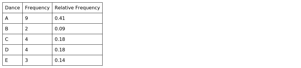 a) Prepare a multiple frequency table for dance preferences of both genders.