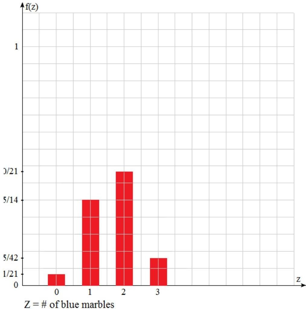 A box contains 4 red and 5 blue marbles. Michele picks three marbles at random from this box. If is a random variable representing the # of blue marbles picked from the box, do the following: