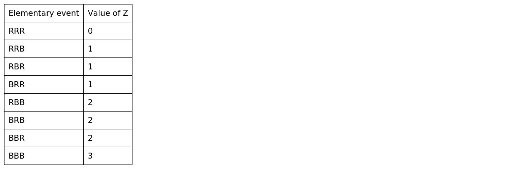 Let number of times the blue marble is picked from the box. The 8 possible elementary events and the corresponding values for , are