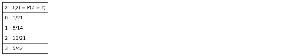a. Express the probability mass function of in tabular form.