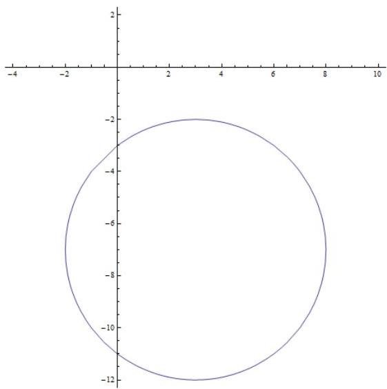 The center: x=3,y=−7x = 3, y = -7x=3,y=−7