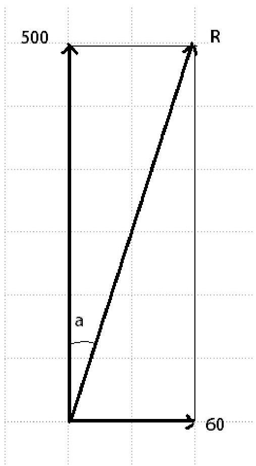 If the wind speed is 60 mph and the velocity due to the thrust is 500 mph show that the resultant velocity R is