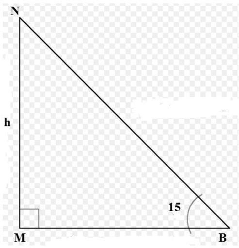 Ravi has a plane triangular pilot ABC in which AB = 9m, BC = 7m and CA = 8m. A Flag is hoisted at the midpoint M of the side AC. If the top of the Flag subtends an angle 15° at the corner B of the plot, determine the height of the Flag From the ground.