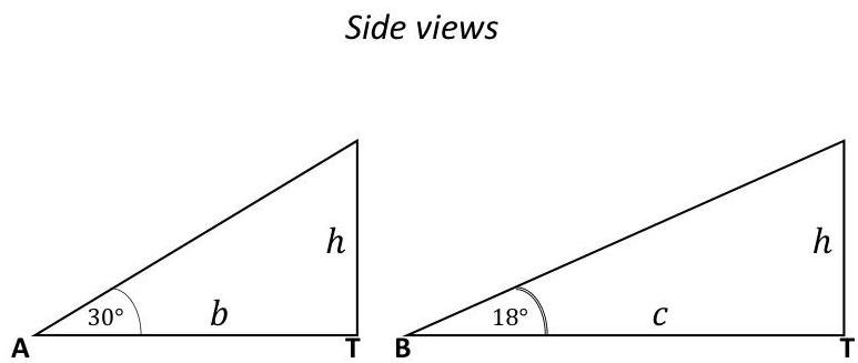 At the same time cot30∘=hb and cot18∘=hc. Therefore b=hcot30∘ and c=hcot18∘.