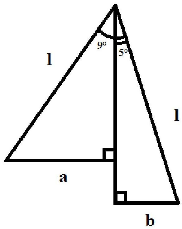l=sin9∘a=sin5∘b0.087156b=0.1564342−b