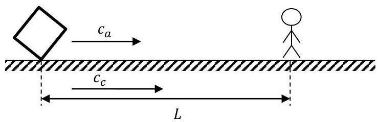 The difference in time Δt is caused by the different speed of sound in the air ( ca ) and in the concrete ( cc ). The time needed for the sound to overcome the distance L :