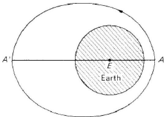 We need draw the artificial satellite is at perigee at A (the point in its orbit nearest the Earth's centre E) and at apogee at A' (when it is farthest from the Earth's centre):