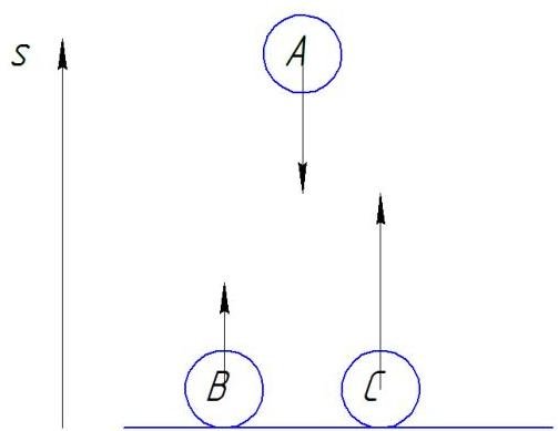 A:sA=sA0+vA0⋅t+2a⋅t2=s0−2g⋅t2B:sB=sB0+vB0⋅t+2a⋅t2=5sm⋅t−2g⋅t2C:sC=sC0+vC0⋅t+2a⋅t2=10sm⋅t−2g⋅t2