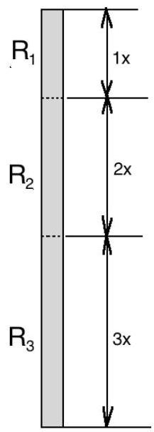 R=R1+R2+R3R=R1+2R1+3R1R=6R1R1=6R;R2=62R;R3=63R=2R
