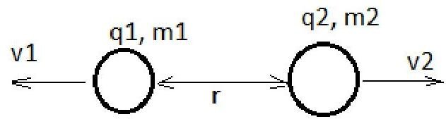 q1,q2 are charges, r is distance between particles