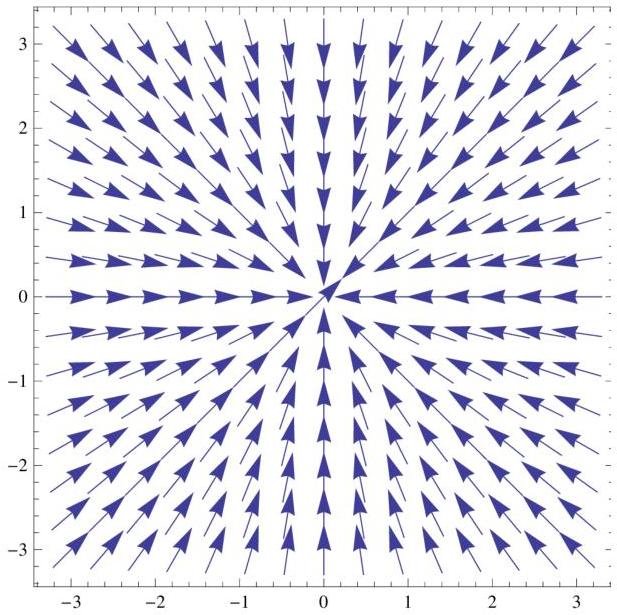 Given V=kQx2+y2 , we obtain: E=−∇V=−kQ(x2+y2x,x2+y2y) . The magnitude is ∣E∣=kQx2+y2x2+x2+y2y2=kQ . We can see, the potential is spherically-symmetric, so the field goes into the center of the xy plane. Here is the sketch of a vector field: