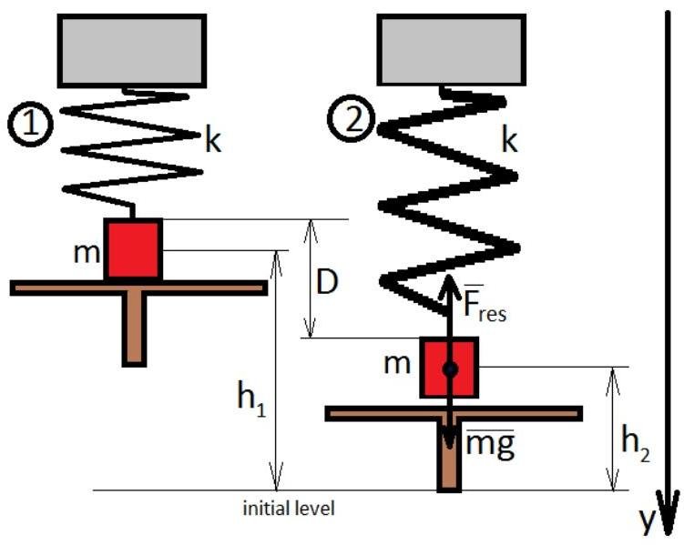 For the initial level of the system we will take the position of the board after the weight hanging on a spring, k- spring constant;