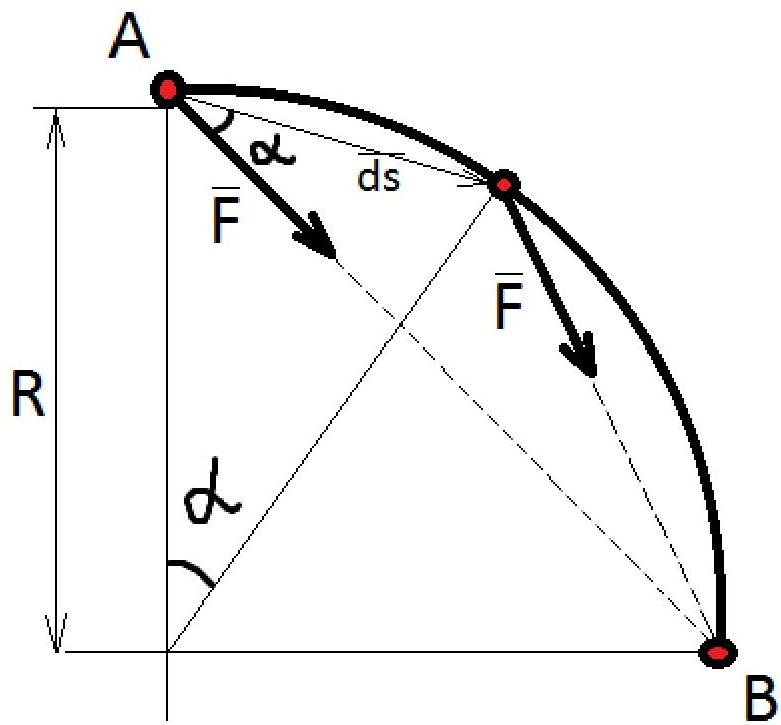 A=∫ABF∗ds=∫ABF∗ds∗cosα∗dα(1)ds=R∗α