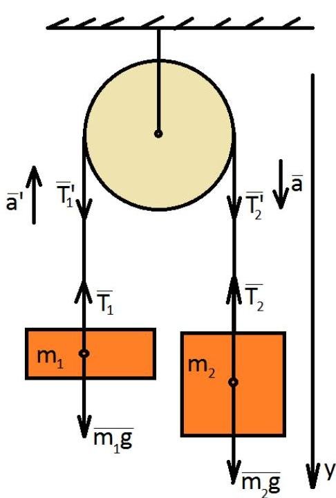 An Atwood machine consist of a single pulley about an axis through it centre and perpendicular to its plane.the length of the inextensible string connecting the two masses and going over the pulley is L. Calculate the acceleration of the system.