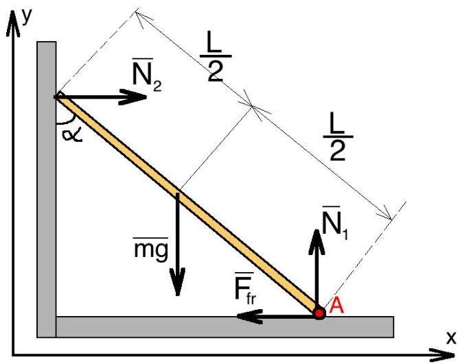 α=53∘ - angle which ladder makes with the wall