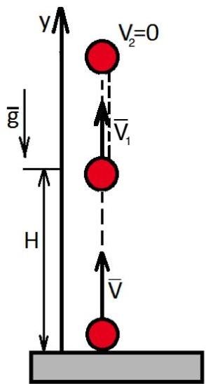 y:H=Vt1−2gt12,t1−flight time to reach the height H=5m